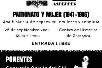 Una historia de represión, encierro y rebeldía Presentación: Asociación Transmuros PONENTES: Consuelo García del Cid Isabel Gallego Paca Blando Andrea Momoitio Inmaculada García DÍA: 28 de Septiembre HORA: 12:00 a 14:00 LUGAR: Centro de Historias, (Pza. San Agustín, 2 Zaragoza)
