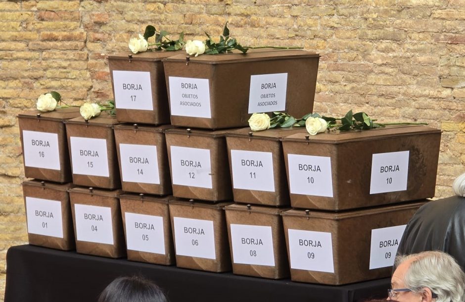 A petición del Gobernador Civil de Zaragoza, José Antonio García-Noblejas, el alcalde de Borja, Vicente Compans Manero, le comunica que hay enterradas en una fosa común, 17 personas no identificada, que pueden ser trasladadas al Valle de los Caídos.