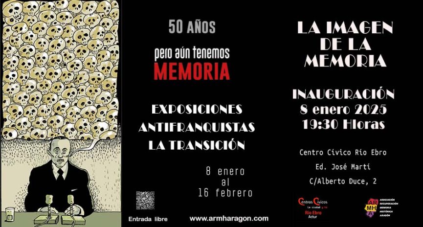 Dentro de la VII edición de LA IMAGEN DE LA MEMORIA, en el espacio expositivo del Centro Cívico Río Ebro, Ed. José Martí, sito en la calle Alberto Duce, 2, se `podrán visitar del 7 de enero al 16 de febrero dos de nuestras exposiciones.
