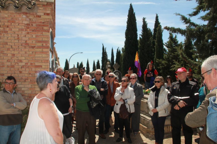 A las 12,00 en el cementerio de la localidad, al lado de la placa que recuerda a los 20 borjanos asesinados y colocada el año pasado por el ayuntamiento de Borja, Mercedes Sánchez descendiente de tres de los allí incluidos dió voy a su bisabuela, Julia Sánchez Castellot, al sufrimiento, al robo de toda su vida, su marido, sus hijos, su hacienda.