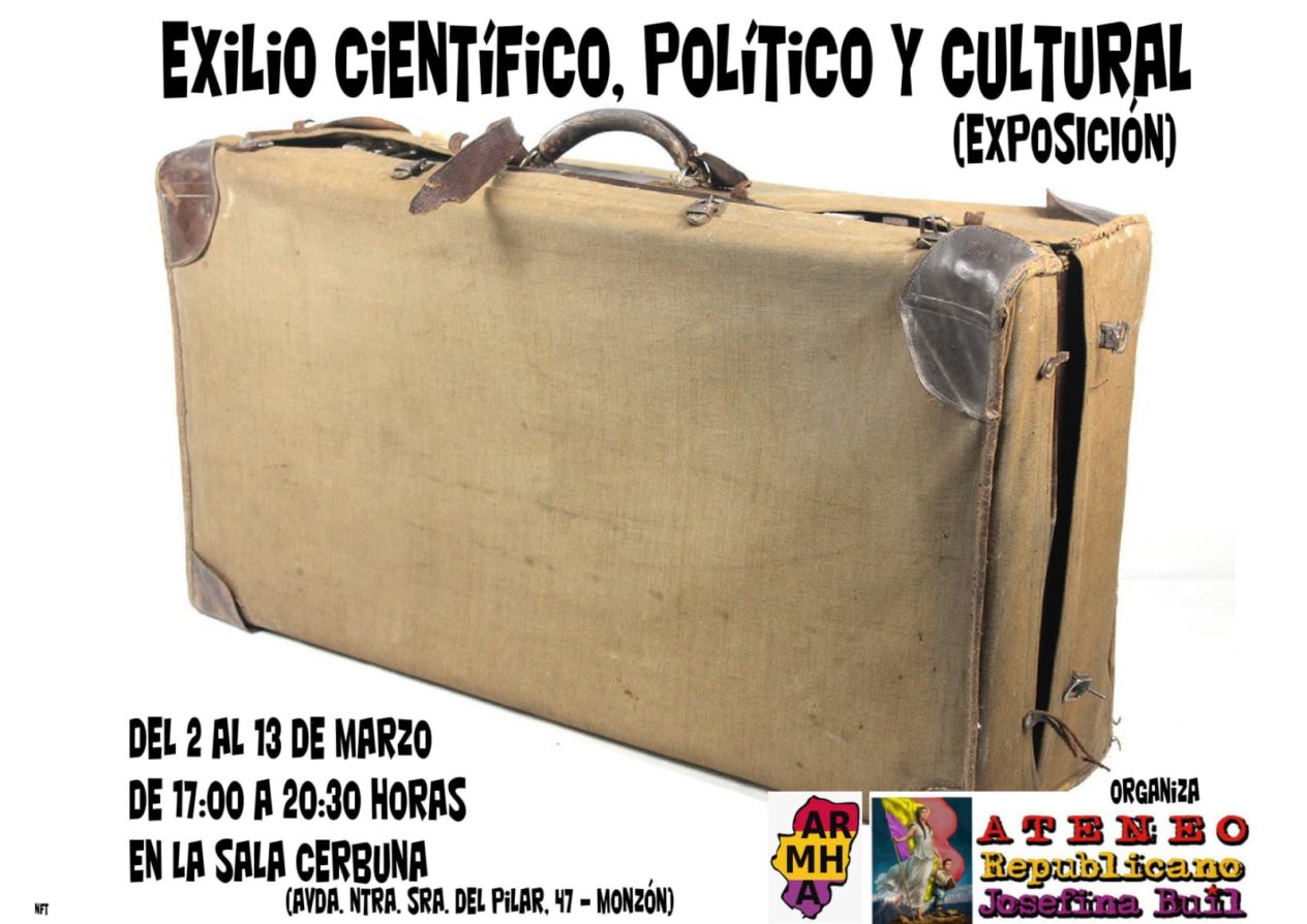 Nuestra exposición «EXILIO CIENTÍFICO, POLÍTICO Y CULTURAL» viajará a Monzón el próximo día 2 de marzo. Organizado por el ATENEO REPUBLICANO JOSEFINA BUIL, se podrá visitar hasta el día 13 de marzo, en la Sala Cerbuna (Avda. Ntra. Sra. del Pilar, 47-Monzón), en horario de 17:00 a 20:30.