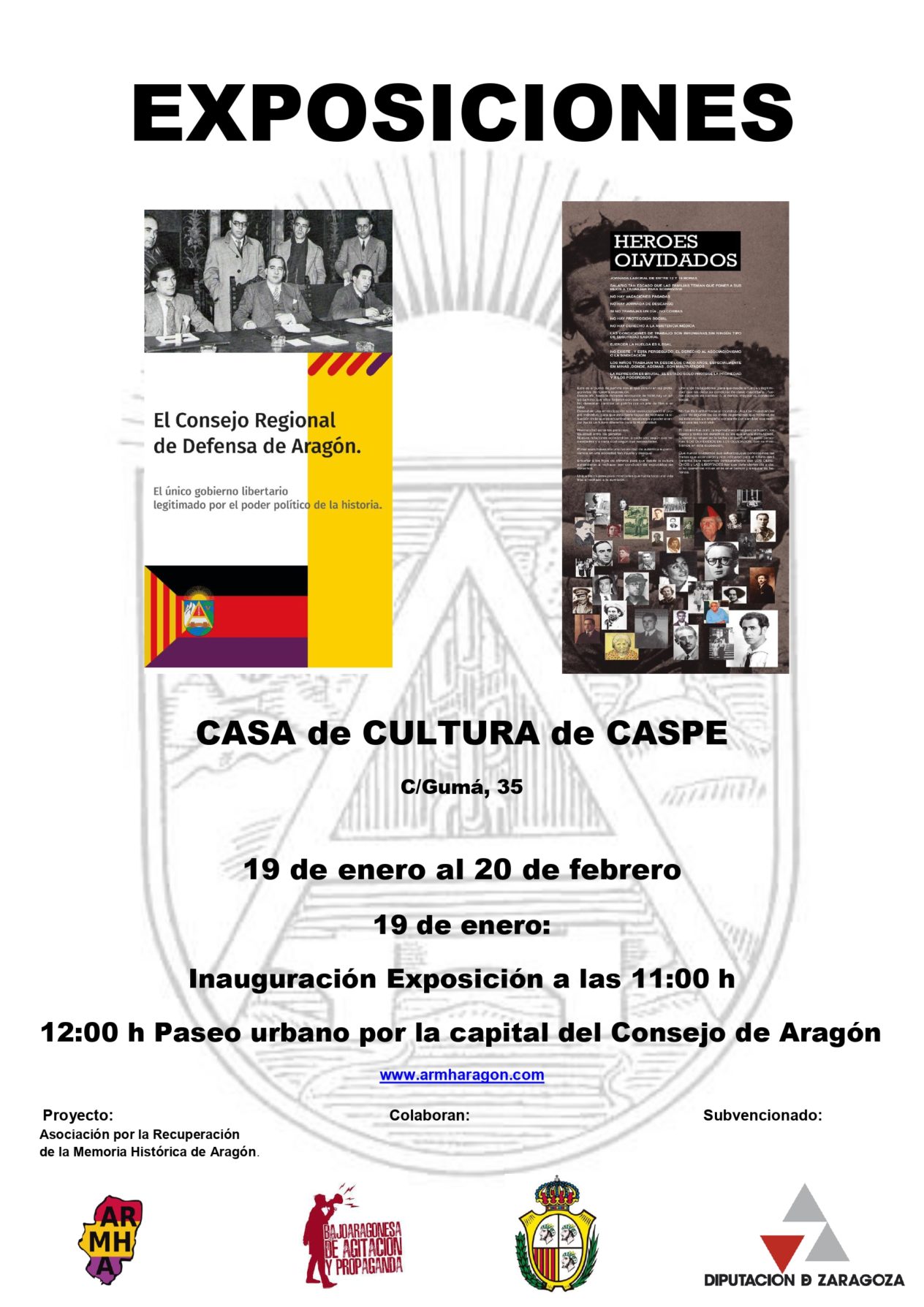 Este pasado domingo 19 de Enero de 2020, en la CASA DE CULTURA de Caspe, fueron presentadas, a las once de la mañana, las exposiciones: EL CONSEJO REGIONAL DE DEFENSA DE ARAGÓN y HÉROES OLVIDADOS. Ambas proyectadas por la ASOCIACIÓN POR LA RECUPERACIÓN DE LA MEMORIA HISTÓRICA DE ARAGÓN, la primera con ayuda de la DIPUTACIÓN PROVINCIAL DE ZARAGOZA, y … Read More
