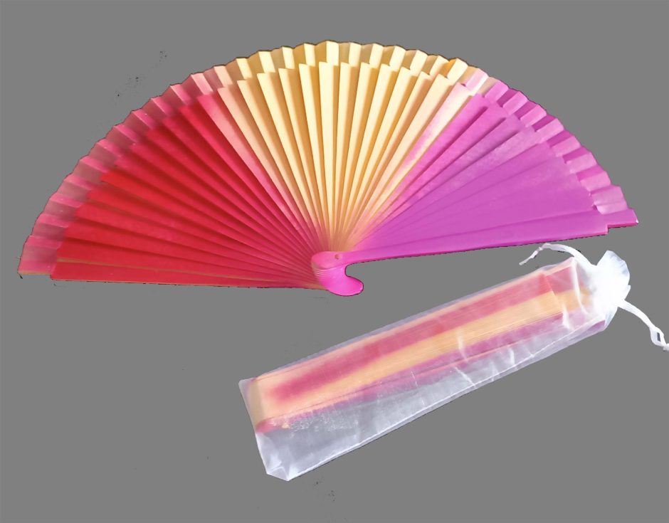 Abanico de madera y tela con los colores de la bandera republicana por una cara y mate por la otra.